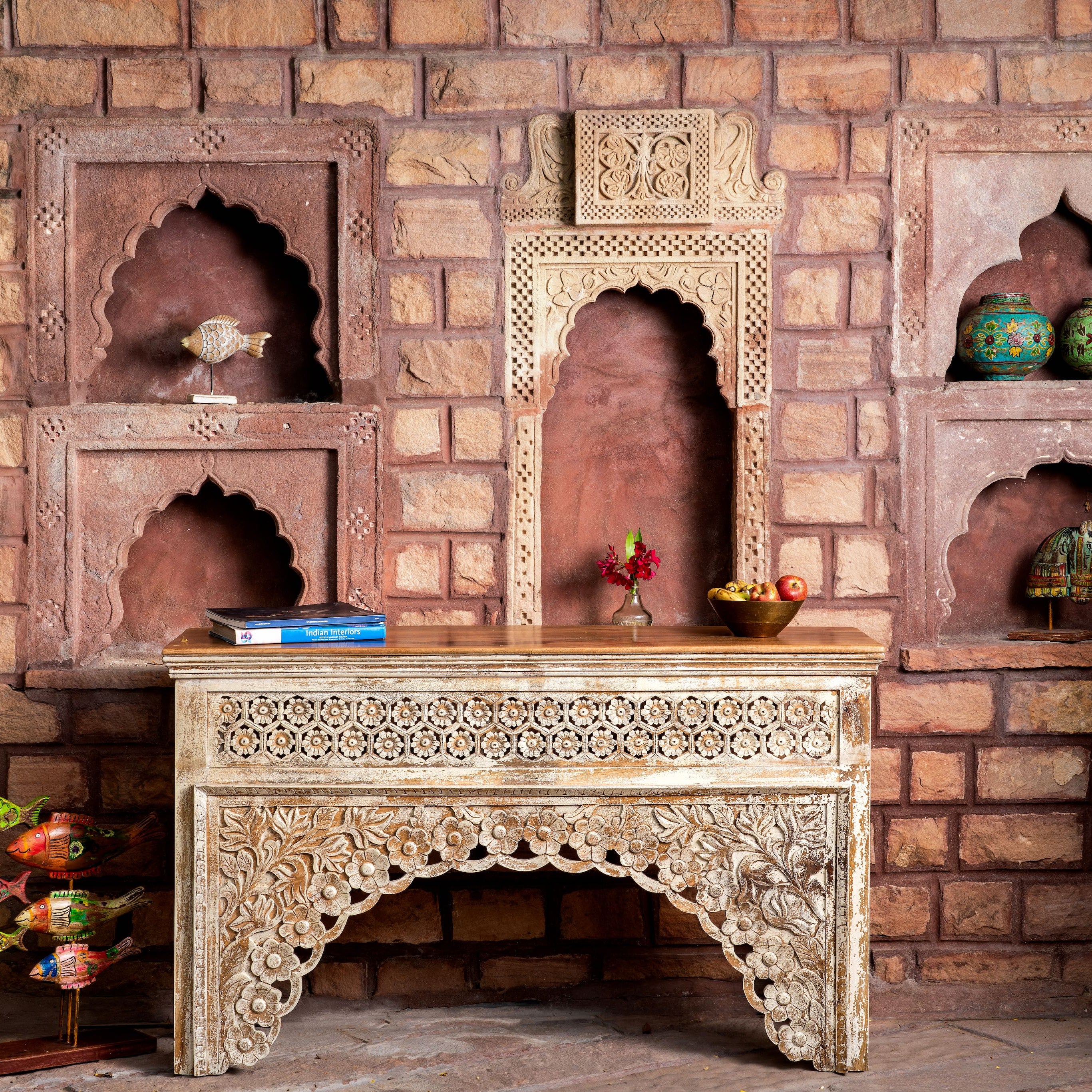 Eine Besonderheit unserer Massivholzmöbel ist ihr orientalisch inspiriertes Design. Gerne verwenden wir aufwendige Ornamente oder florale Muster. Sie strahlen Behaglichkeit aus, sind aber auch ein Garant für Wohnlichkeit und individuellen Charme. Unsere Möbeldesigns sind vor allem von der Kultur Indiens inspiriert und sorgen dafür, dass sich unsere Möbel optisch von anderen Kollektionen und Marken abheben. Beim Design unserer Massivholzmöbel sind wir allerdings immer für eine Überraschung gut.