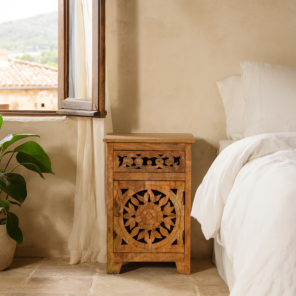Eine Besonderheit unserer Massivholzmöbel ist ihr orientalisch inspiriertes Design. Gerne verwenden wir aufwendige Ornamente oder florale Muster. Sie strahlen Behaglichkeit aus, sind aber auch ein Garant für Wohnlichkeit und individuellen Charme. Unsere Möbeldesigns sind vor allem von der Kultur Indiens inspiriert und sorgen dafür, dass sich unsere Möbel optisch von anderen Kollektionen und Marken abheben. Beim Design unserer Massivholzmöbel sind wir allerdings immer für eine Überraschung gut.