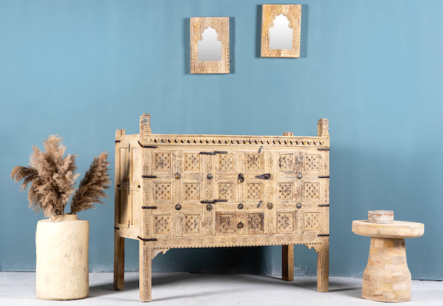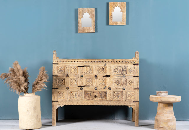 Diese Schatztruhe ist nicht nur ein Möbelstück – sie ist ein Gesprächsthema, das kulturelles Erbe mit moderner Eleganz verbindet. Perfekt, um jedem Raum Charakter und Eleganz zu verleihen.
