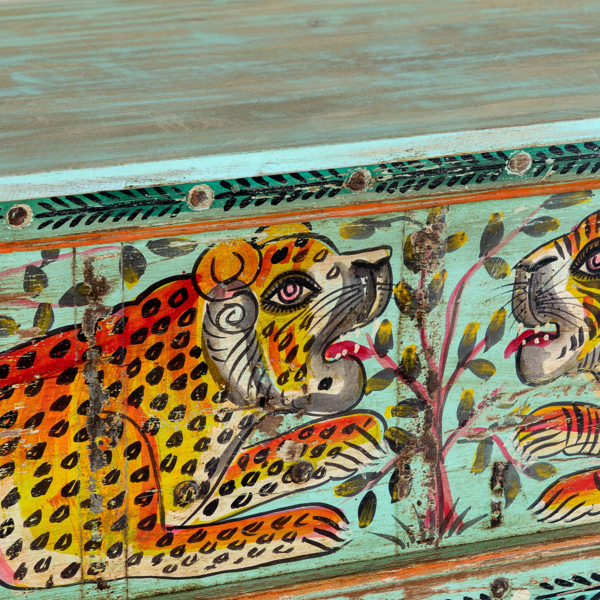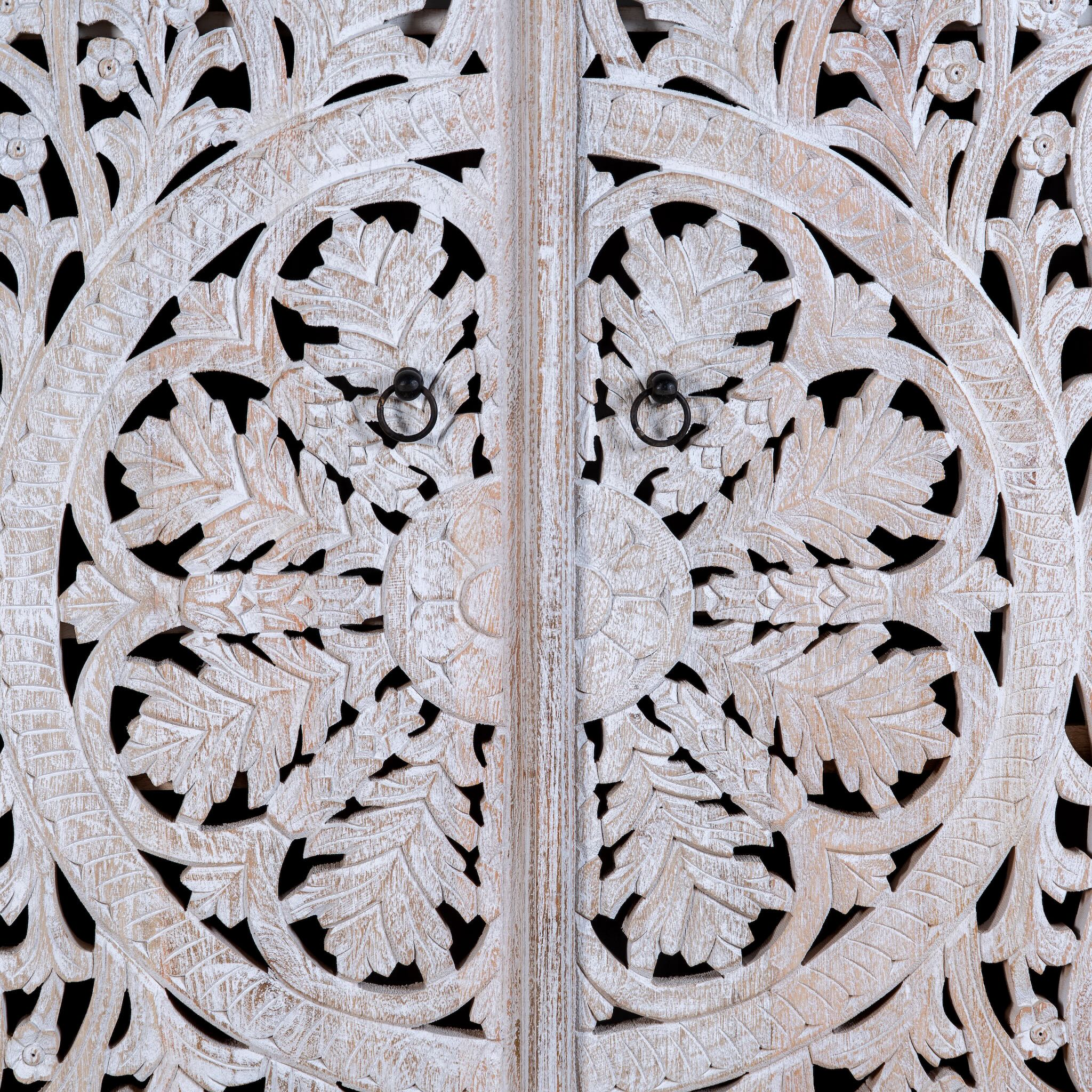 Indische Handwerkskunst zeigt sich deutlich in der Herstellung unserer Massivholzmöbel. Die aufwendig verzierten Schrankfronten sind handbemalt und überraschen mit ihrem Farbenspiel. Filigrane florale Motive schmücken die gesamte Oberfläche der einzelnen Schränke und sorgen dafür, dass Ihre Massivholzmöbel sehen aus wie Schränke. Doch das ist noch nicht alles: Die einzigartige Kombination aus robustem Holz und feiner Lackierung erzeugt einen besonderen Kontrast. Bewahren Sie Ihre Habseligkeiten in edlen Massivholzmöbeln auf und kreieren Sie mit unseren Angeboten Ihren ganz eigenen Stil.
