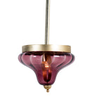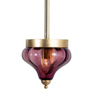 Wir präsentieren unsere atemberaubende violette Glaslampe Siddarth, eine perfekte Mischung aus zeitloser Eleganz und moderner Raffinesse. Diese exquisite Lampe verfügt über einen wunderschön gearbeiteten violetten Glasschirm, der einen lebendigen Farbtupfer bietet, der jedem Innenraum eine erfrischende Note verleiht. Der Glasschirm wird durch einen stabilen Rahmen ergänzt, der sorgfältig mit luxuriösem Messing (Messing) beschichtet ist, was die Optik verbessert und einen Hauch von Opulenz verleiht.