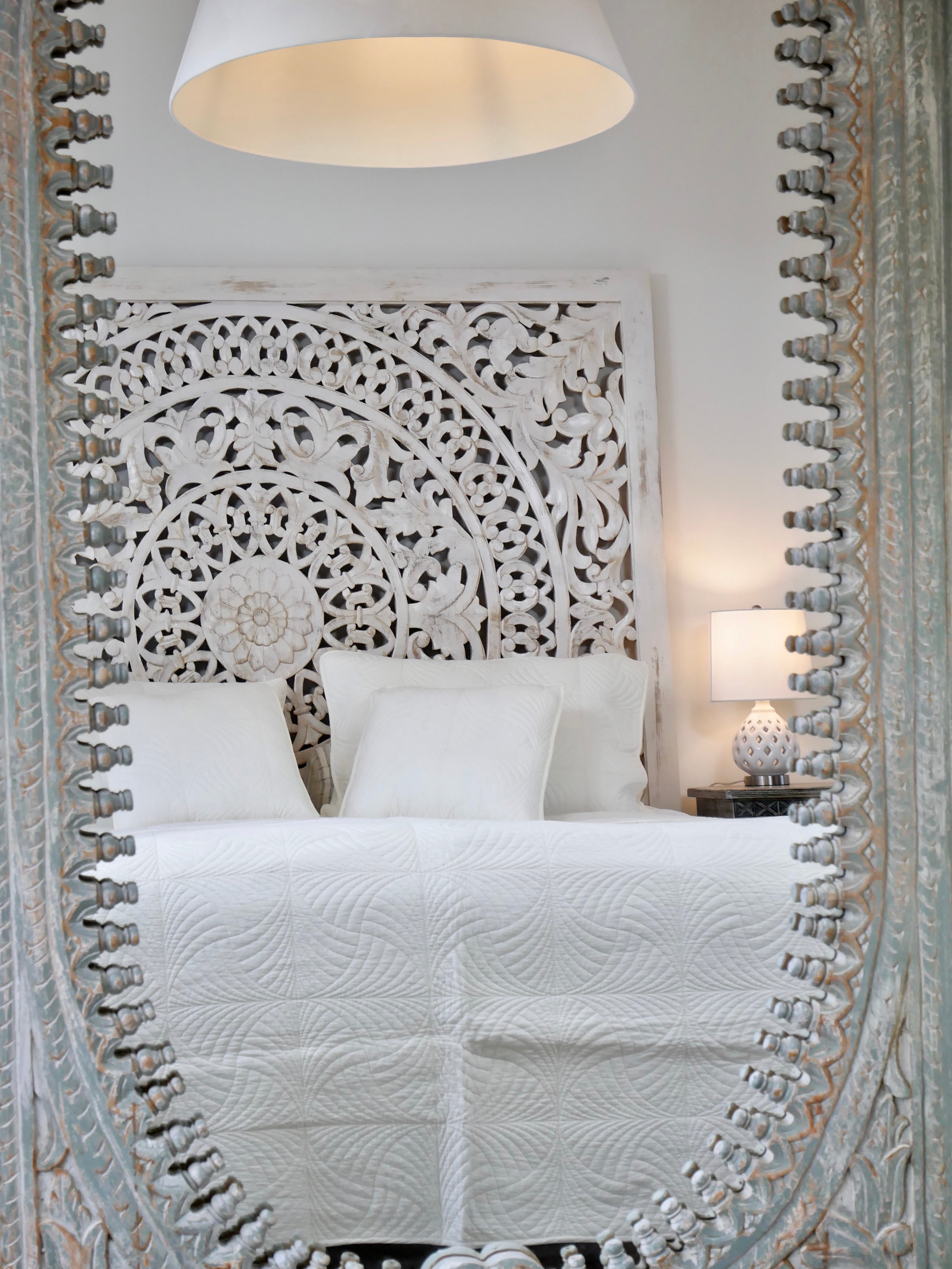 Wie alle unsere Möbel und Produkte stammt auch unsere orientalische Bettwäsche direkt aus Indien. Dort wird sie in Handarbeit aus ungefärbter Naturbaumwolle gefertigt. Dieses Handwerk wird seit Jahrzehnten von Generation zu Generation weitergegeben. Die einzigartigen Muster entstehen durch Blockdruck, eine Technik, die ebenfalls in Indien angewendet wird.