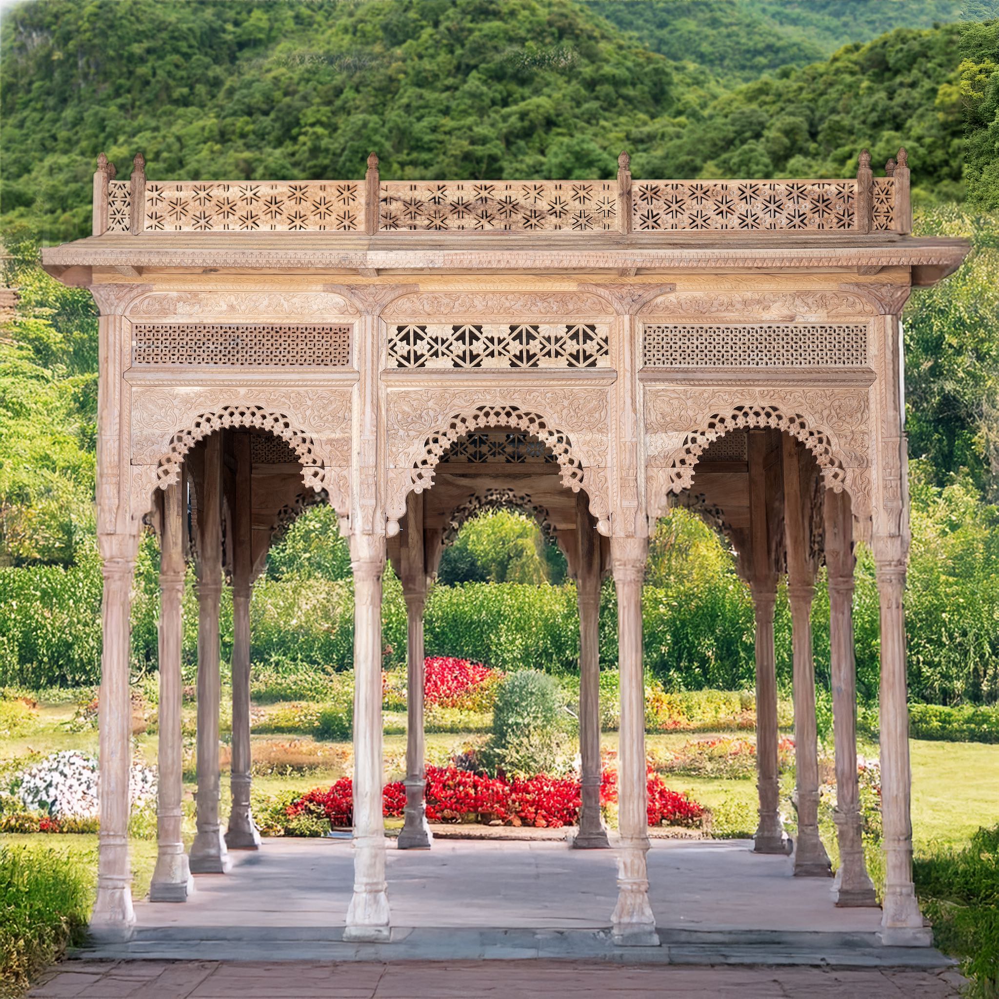 Die sorgfältige Verarbeitung und die Verwendung wasserabweisender Textilien garantieren Komfort und Stil in der freien Natur. Jedes Stück ist Ausdruck traditioneller indischer Handwerkskunst, angepasst an moderne Bedürfnisse.
