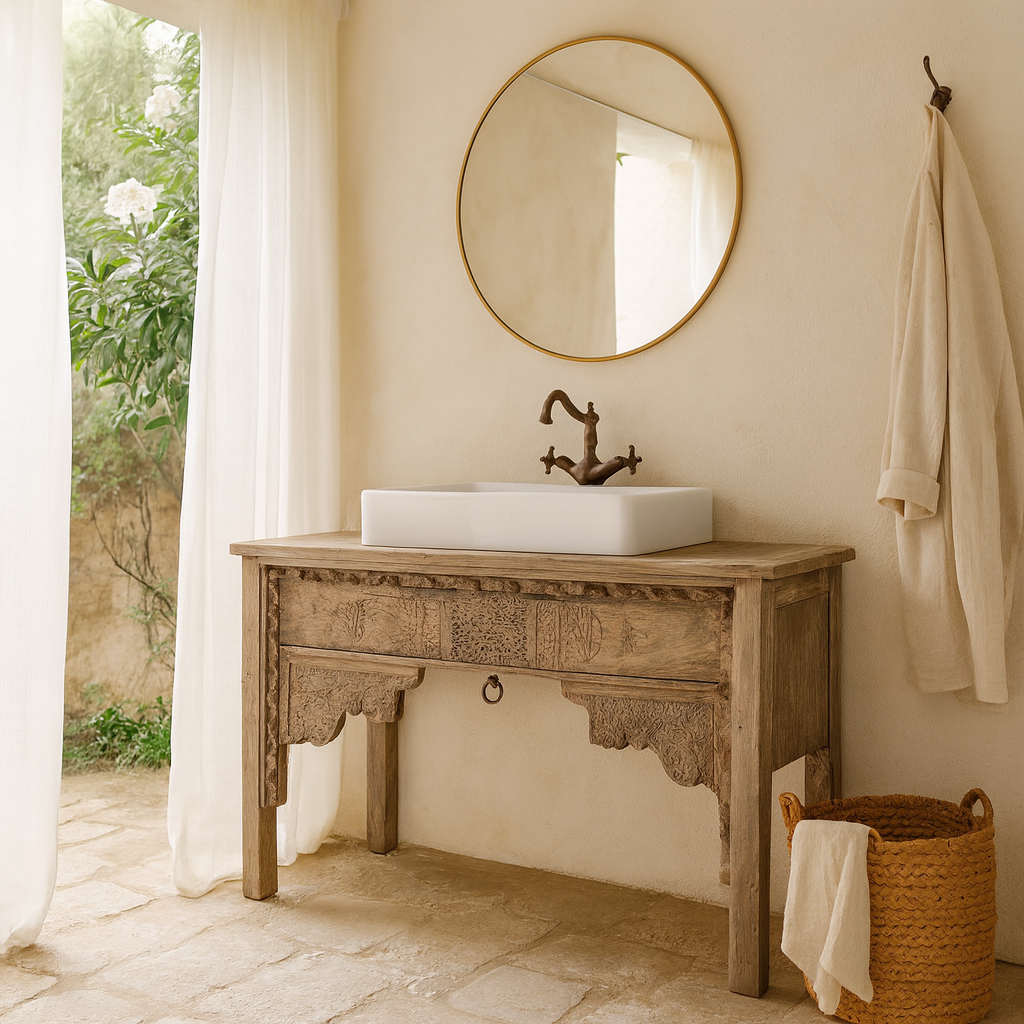 Wir legen nicht nur großen Wert auf die visuelle Ästhetik jedes Möbelstücks, sondern auch auf seine Qualität und Funktionalität. Jeder unserer Vintage-Konsolentische spiegelt unser Engagement für orientalische Handwerkskunst und exotisches Design wider und zeichnet sich durch folgende Merkmale aus: