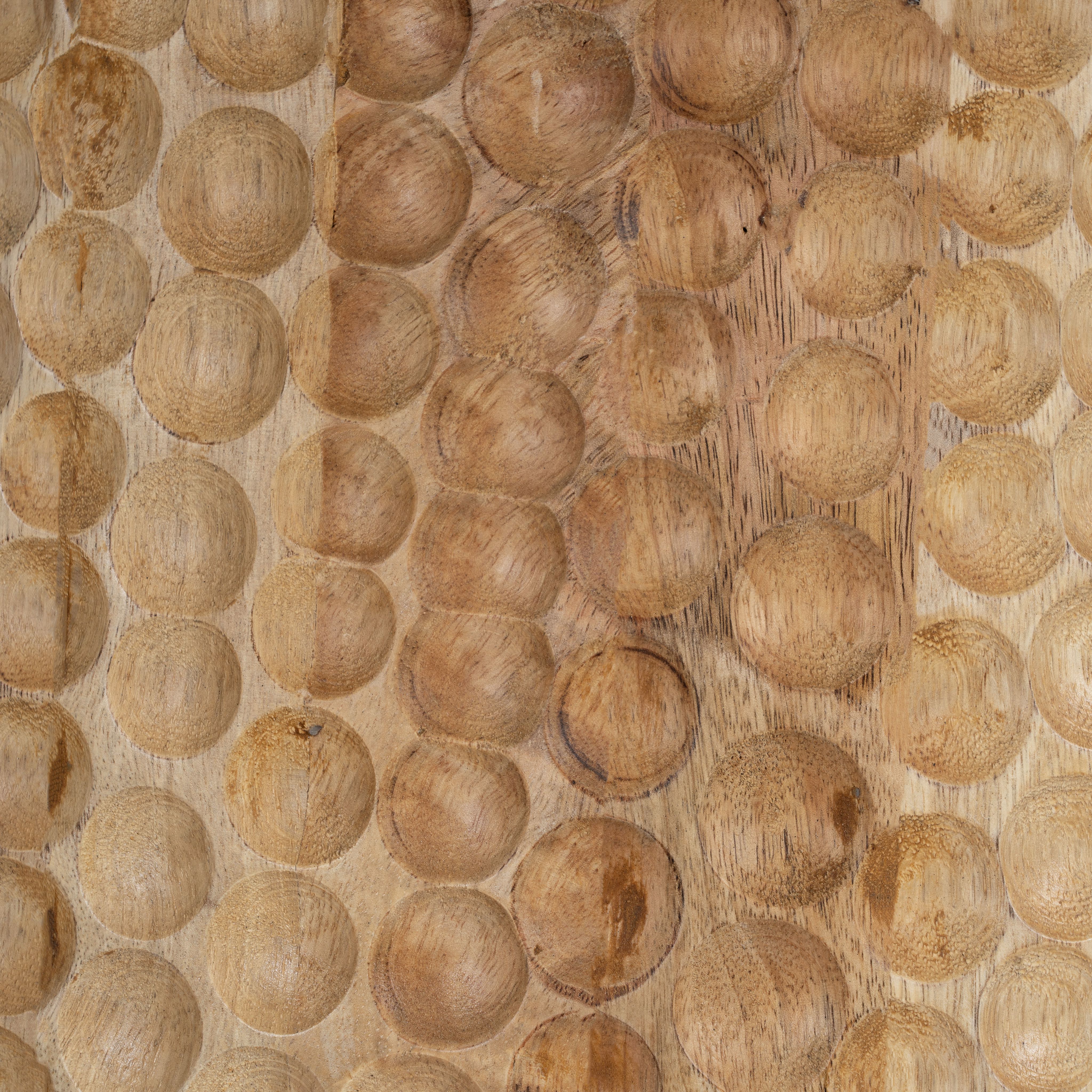 Das Tischgestell ist handgefertigt aus hochwertigem Mangoholz. Jeder Holzstreifen wird einzeln geschnitten und sorgfältig zu einem komplizierten Streifendesign zusammengesetzt, das das Können und die Liebe zum Detail des Handwerkers zeigt. Die reichhaltige, natürliche Oberfläche des Mangoholzes verleiht Tiefe und Charakter und macht das Gestell selbst zu einem beeindruckenden Kunstwerk.