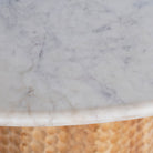 Lernen Sie unseren außergewöhnlichen Esstisch Manomay aus Holz kennen, ein Meisterwerk der Handwerkskunst und des Designs, das garantiert zum Mittelpunkt Ihres Essbereichs wird. Dieser wunderschöne Tisch verfügt über eine luxuriöse Tischplatte aus natürlichem weißem Marmor und bietet eine glatte und elegante Oberfläche, die Raffinesse ausstrahlt. Der kühle, polierte Marmor bildet einen schönen Kontrast zu den warmen Tönen des Mangoholzuntersatzes und schafft so einen harmonischen Materialmix.