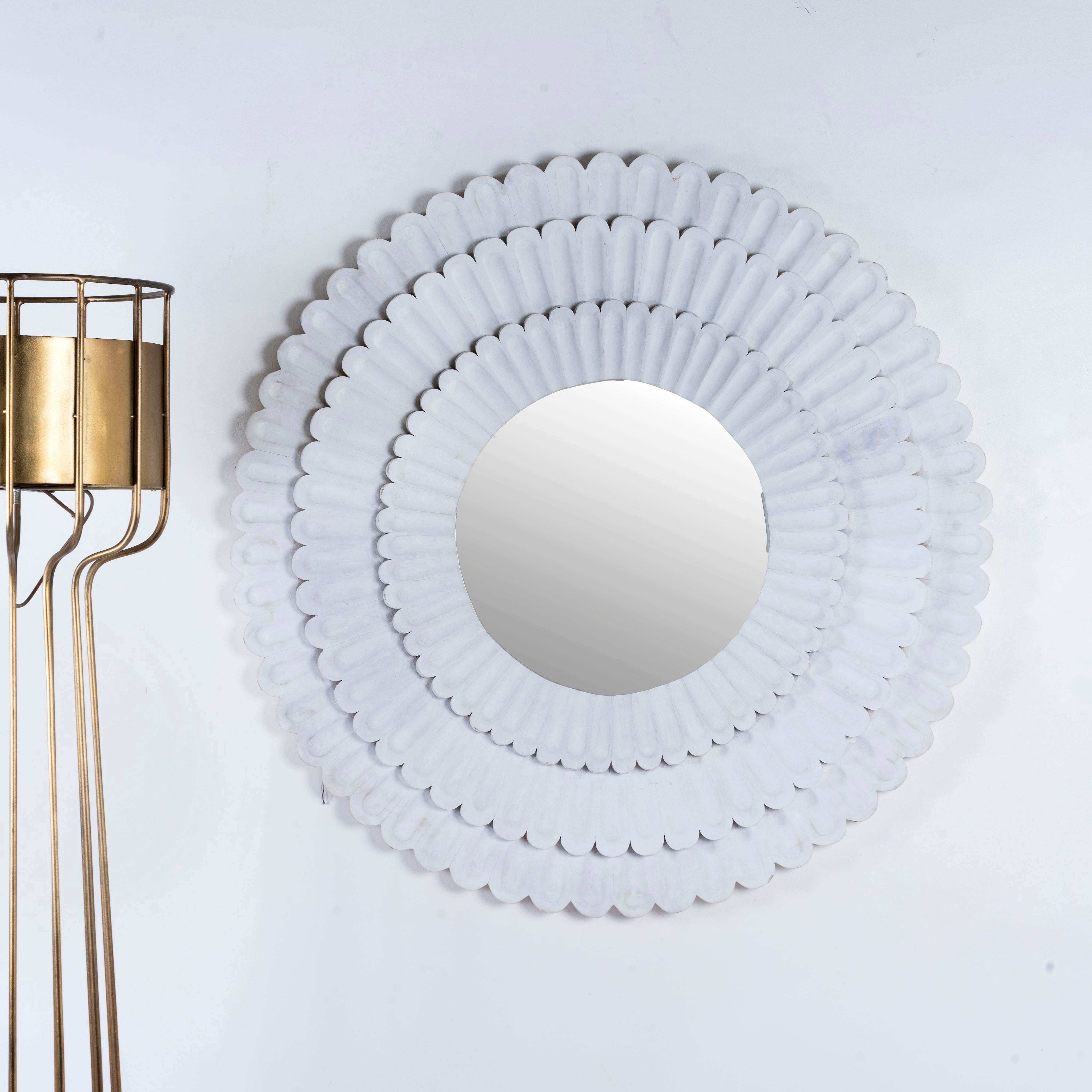Dieser Spiegel ist nicht nur eine reflektierende Oberfläche, sondern ein Kunstwerk, das die Schönheit jedes Raumes unterstreicht. Ob im Eingangsbereich, Schlafzimmer oder Wohnzimmer aufgehängt, dient er als wunderschöner Mittelpunkt, der den Raum erhellt und Tiefe und Dimension verleiht.