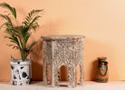 Amreli Antique White - Handgeschnitzer Couchtisch marokkanischer Stil 53 cm