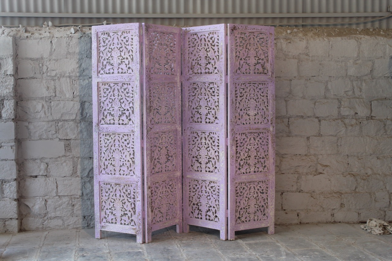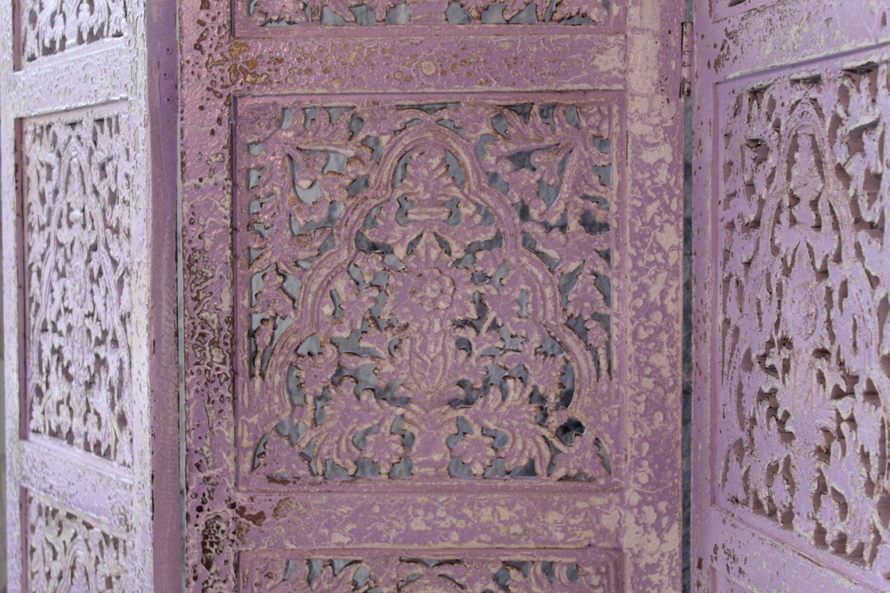 Unser handgeschnitzter faltbarer Raumteiler Alag verwandelt mit seinen filigranen handgeschnitzten Schnitzereien und wunderschönen Farben jeden Raum in einen Urlaubsort.