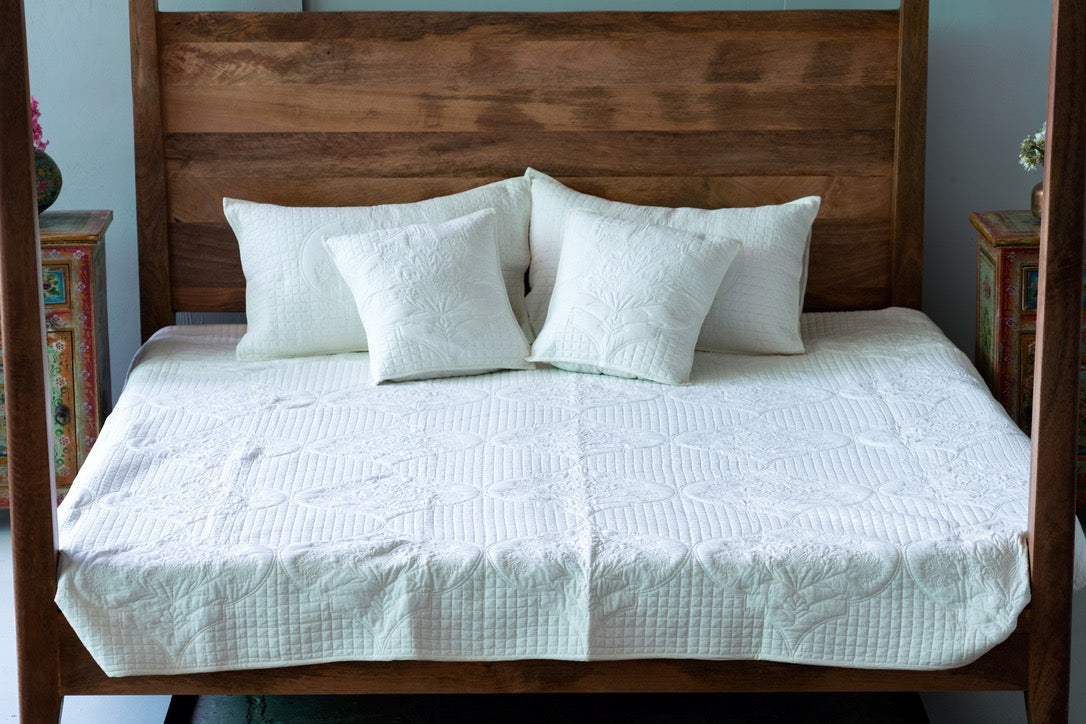 Dieses Bettbezug-Set aus 100 % ungebleichter Naturbaumwolle ist reich bestickt und verfügt über 2 kleine und 2 große Kissenbezüge.