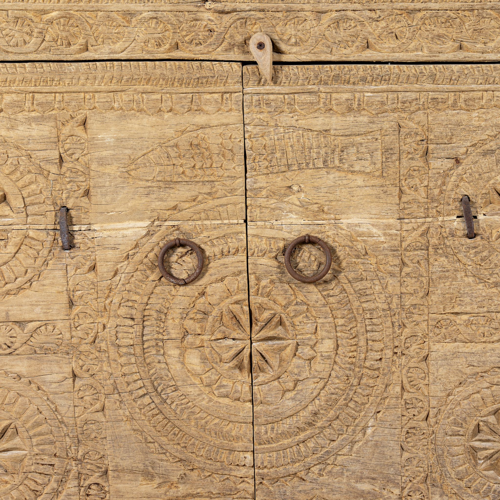 Celebrate craftsmanship and history with this unique reclaimed wood sideboard, handcrafted from parts of an antique teak door. A true piece of teak furniture, it showcases centuries-old artistry, with intricate carvings and natural patina that bring depth, warmth, and storytelling into your home.