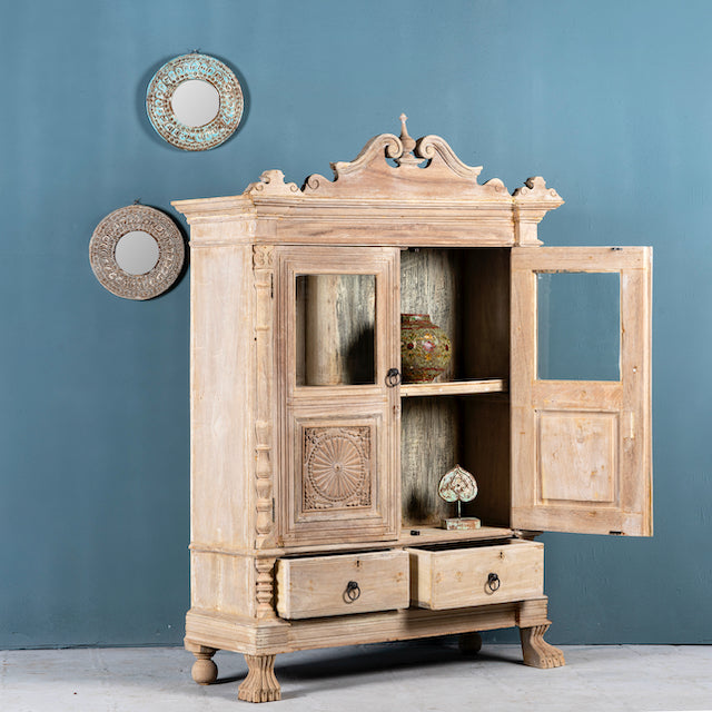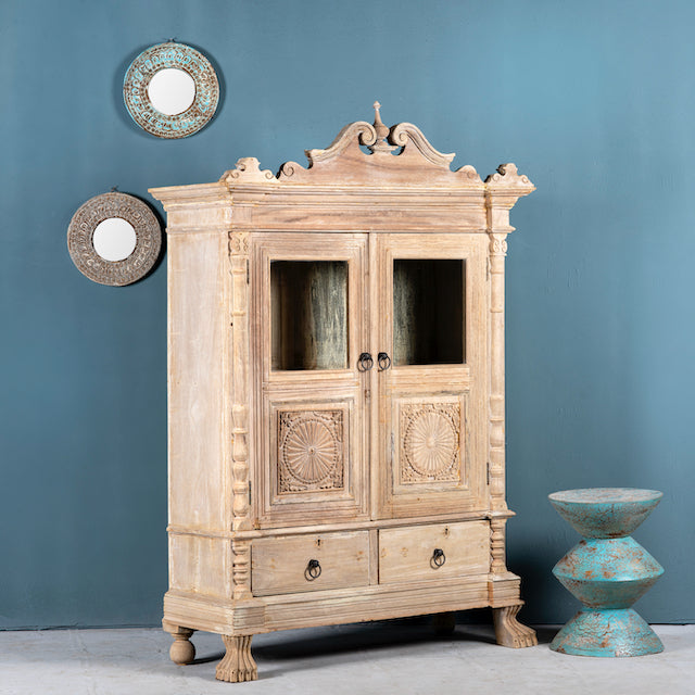 Diese Vitrine vereint traditionelle Handwerkskunst mit modernem Design und ist somit die ideale Wahl für alle, die einzigartige Möbel mit Geschichte schätzen.