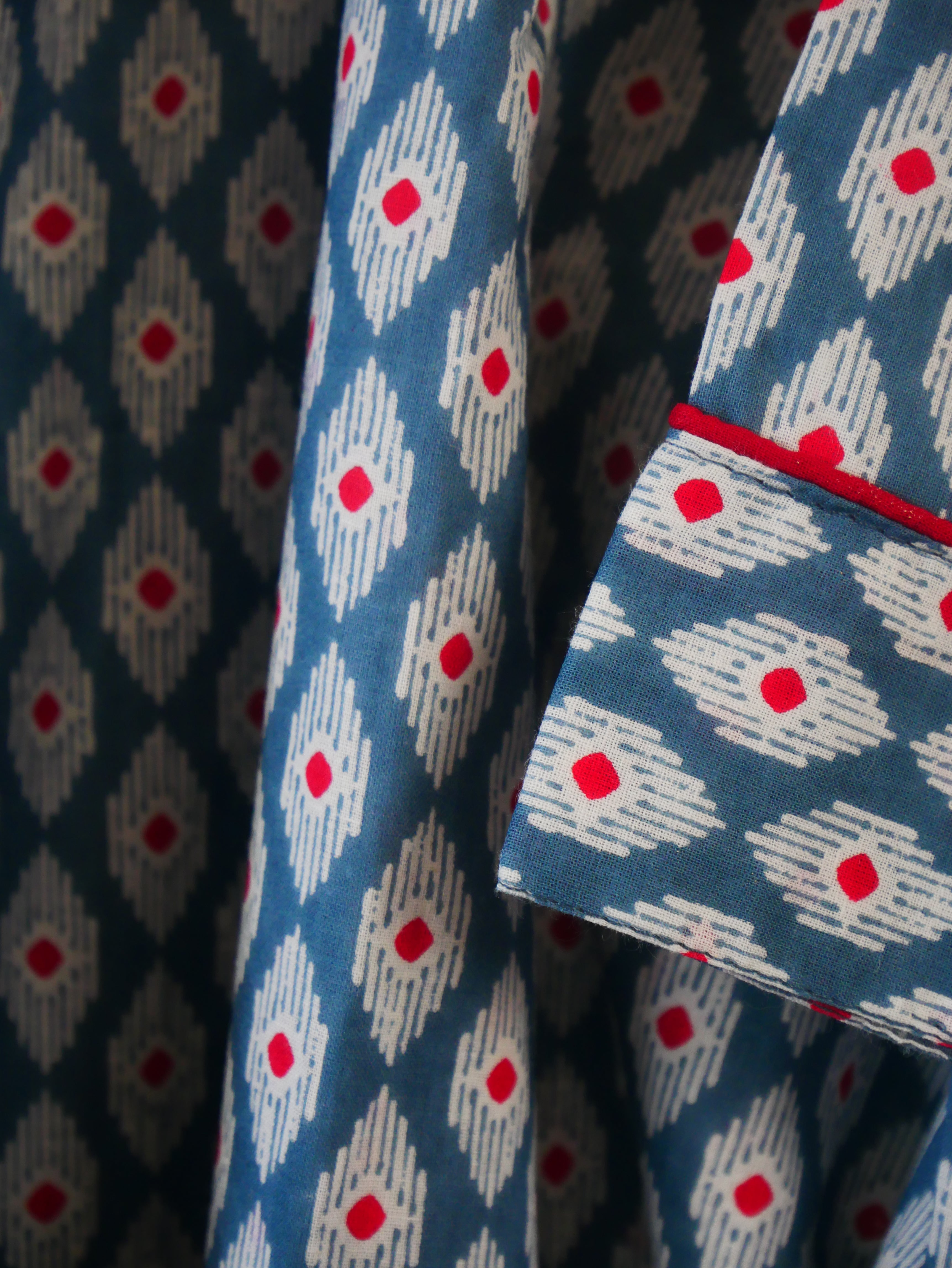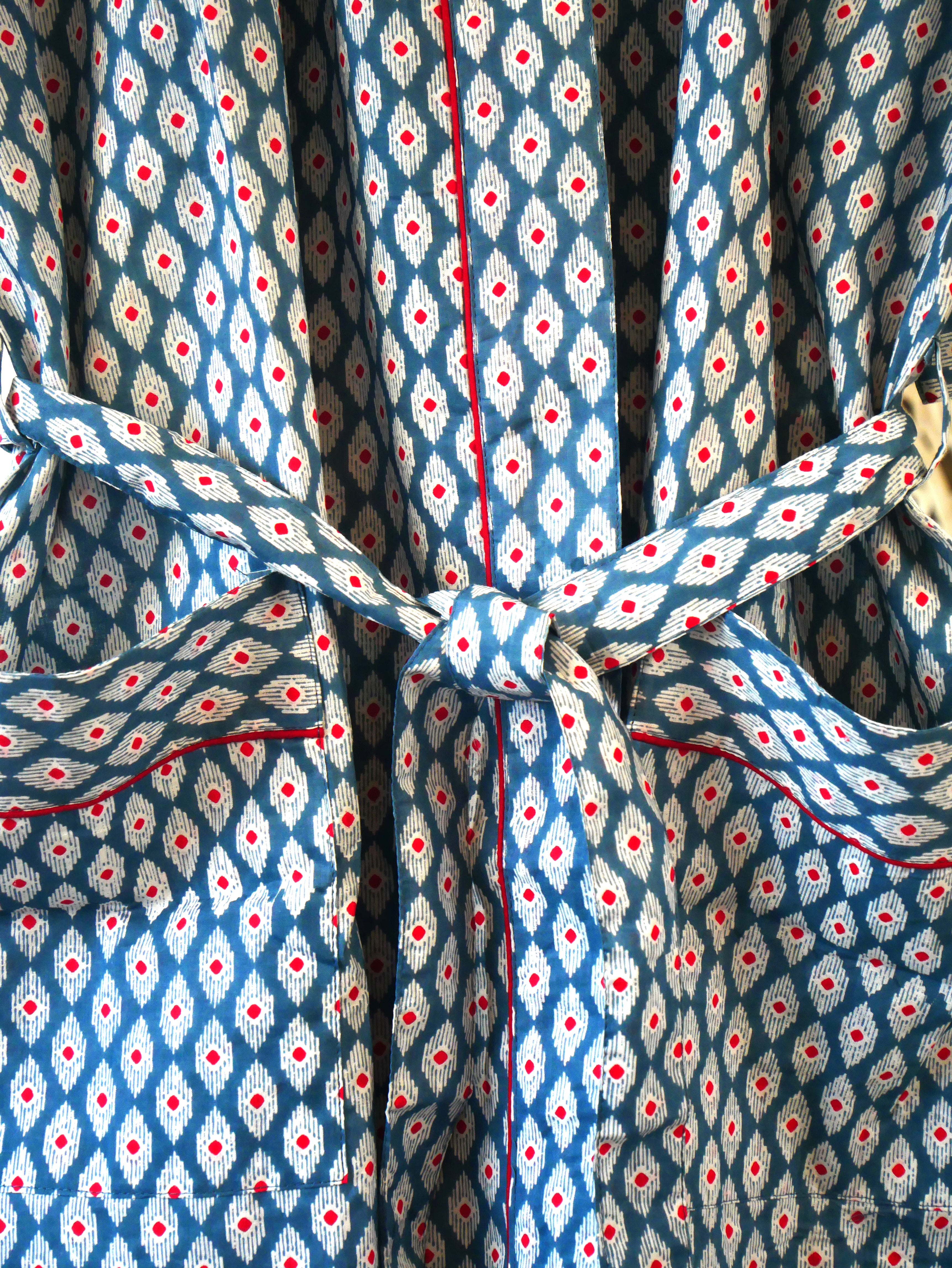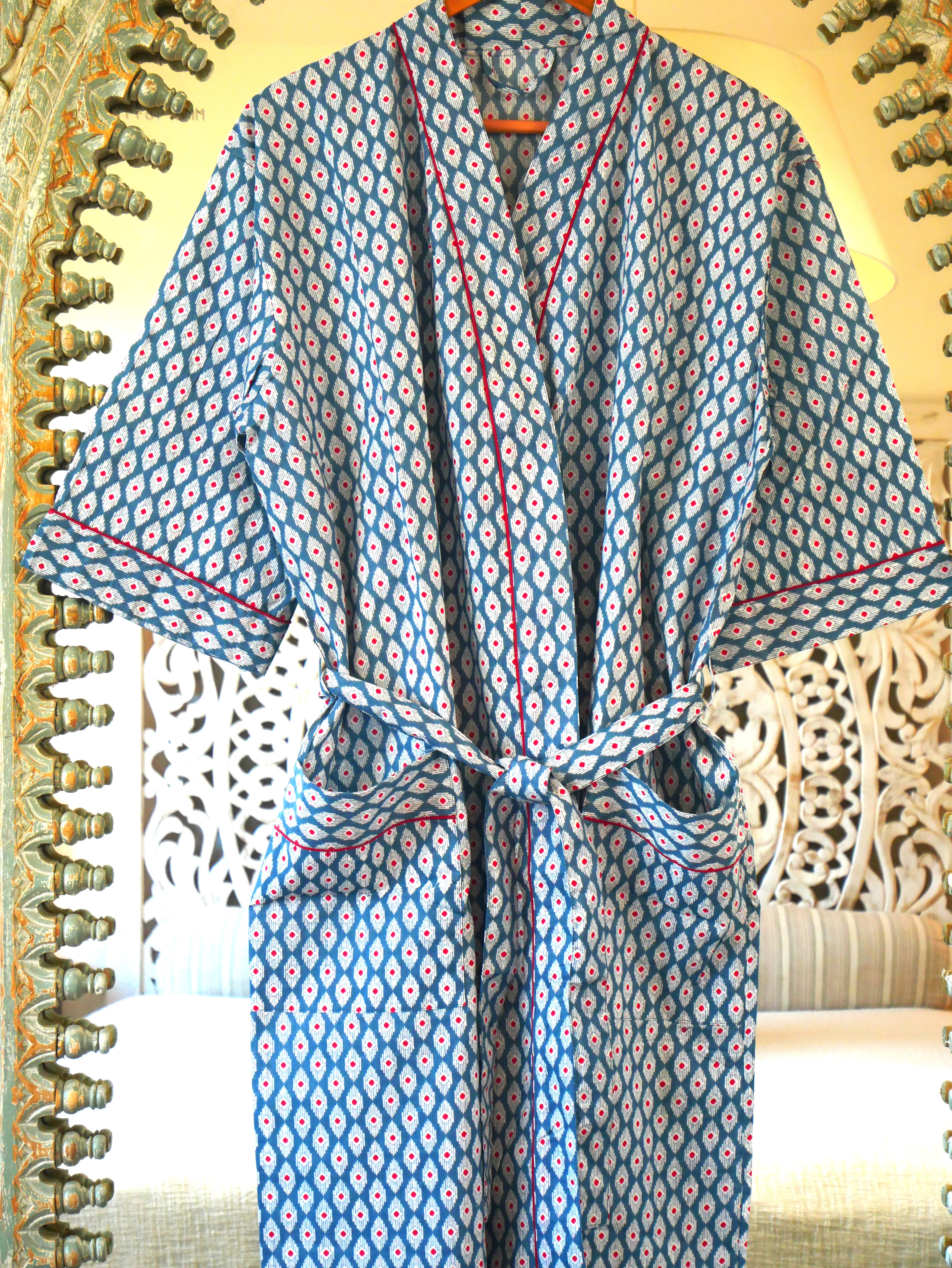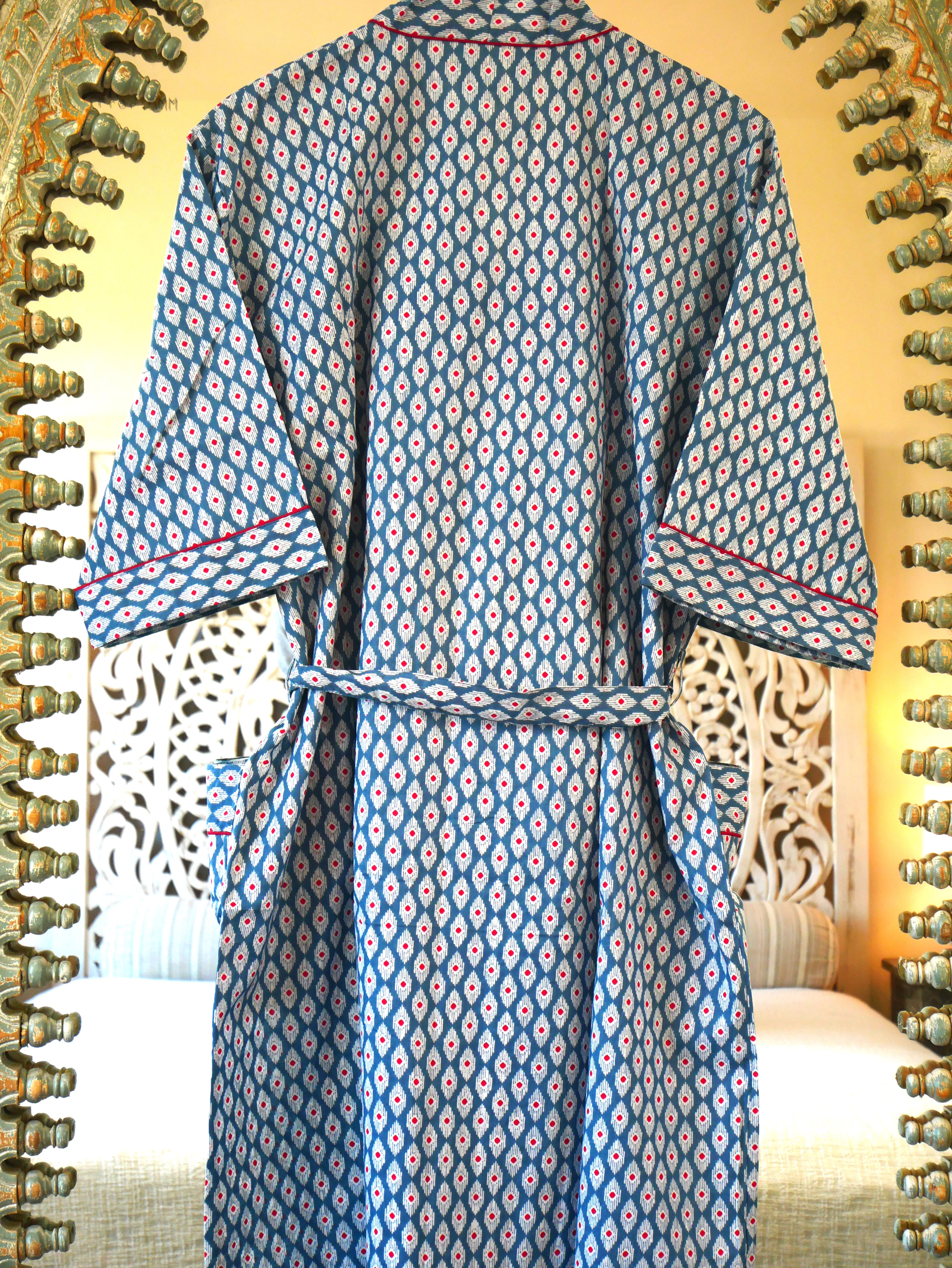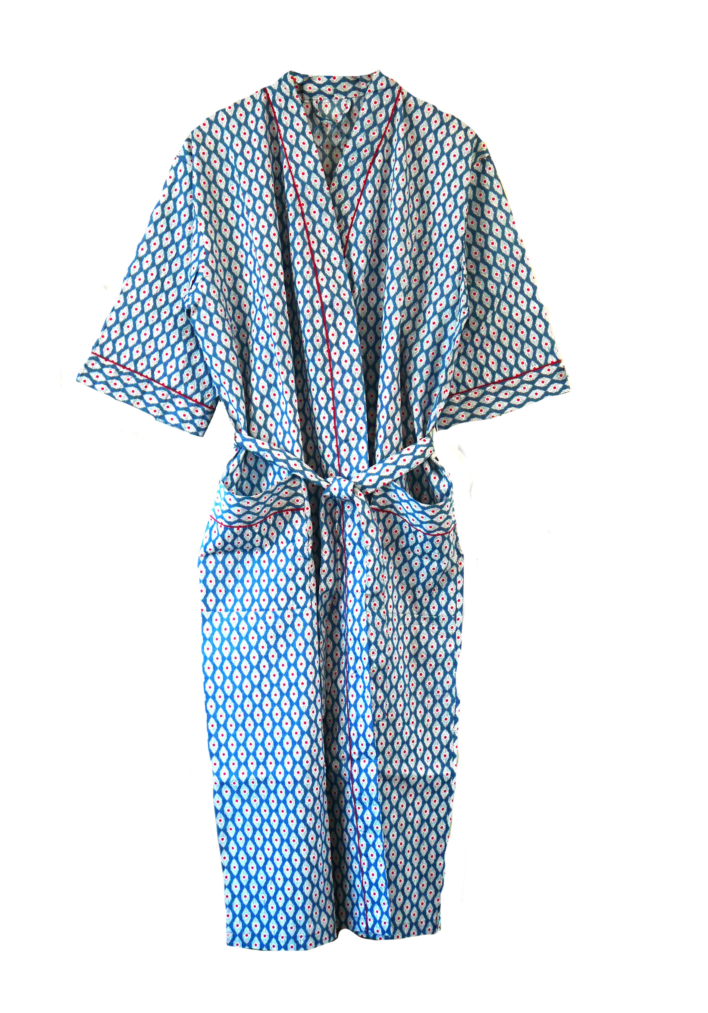 Hüllen Sie sich in die lebendige Schönheit unserer Morgenmäntel, die nach unseren Designs in Jaipur aus 100 % Baumwolle gefertigt werden. Jeder Mantel präsentiert sich in einer Vielzahl von Farben und Designs, die traditionelle Muster aus Rajasthan mit modernen Blumenmotiven verbinden. Diese Mäntel sind nicht nur ein Zeugnis außergewöhnlicher Handwerkskunst, sondern auch eine Feier des kulturellen Erbes und des zeitgenössischen Stils. Ideal zum Entspannen oder um Ihrer Morgenroutine eine exotische Note zu verleihen, versprechen unsere Morgenmäntel Komfort und Eleganz in jedem Detail