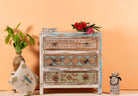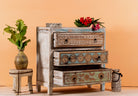 Mit seinen drei Schubladen, die jeweils mit einzigartigen handgefertigten Gravuren verziert sind, ist „Sasan Gir“ ein wahres Kunstwerk. Die komplizierten Designs verleihen diesem exquisiten Stück einen Hauch von Raffinesse und Individualität.