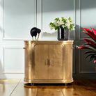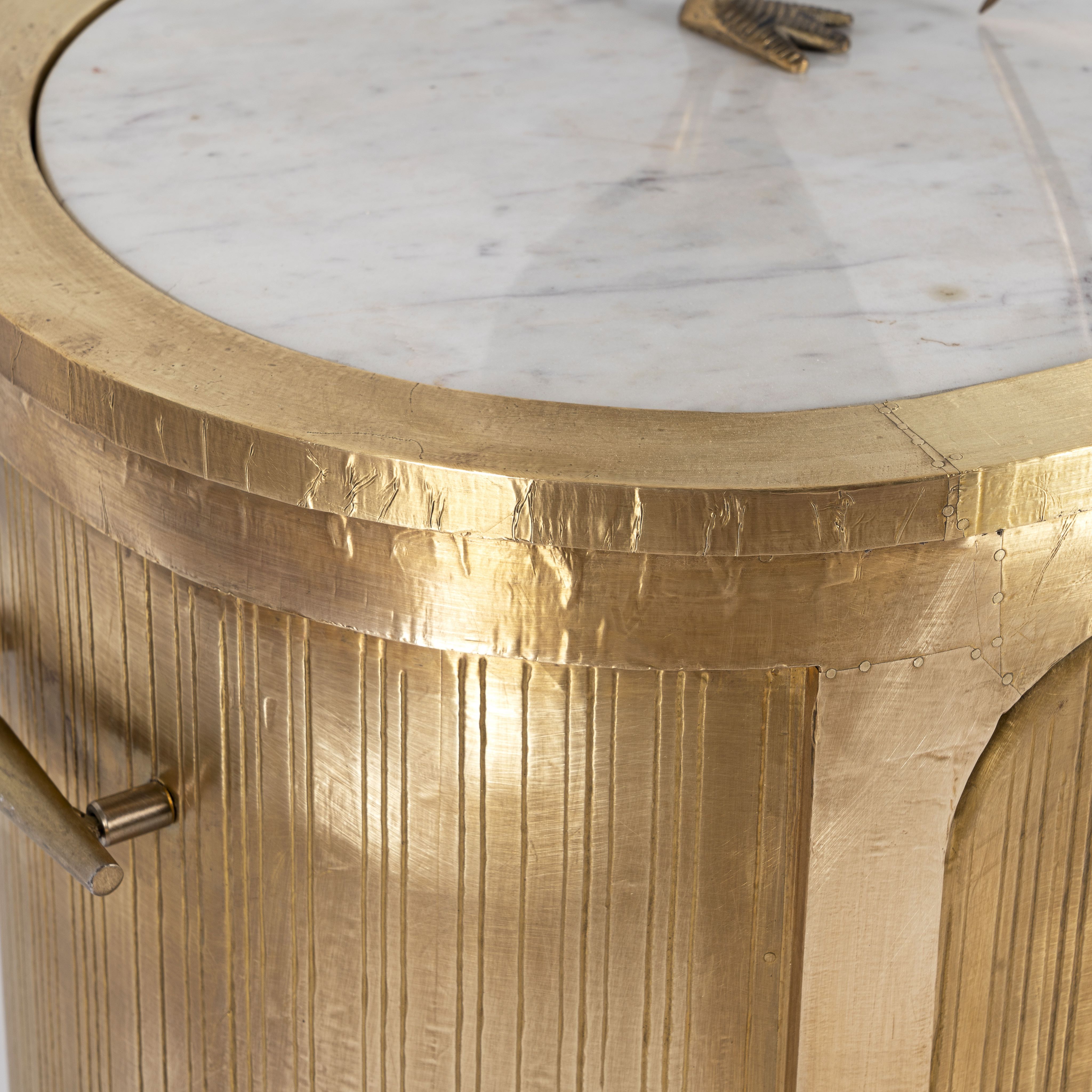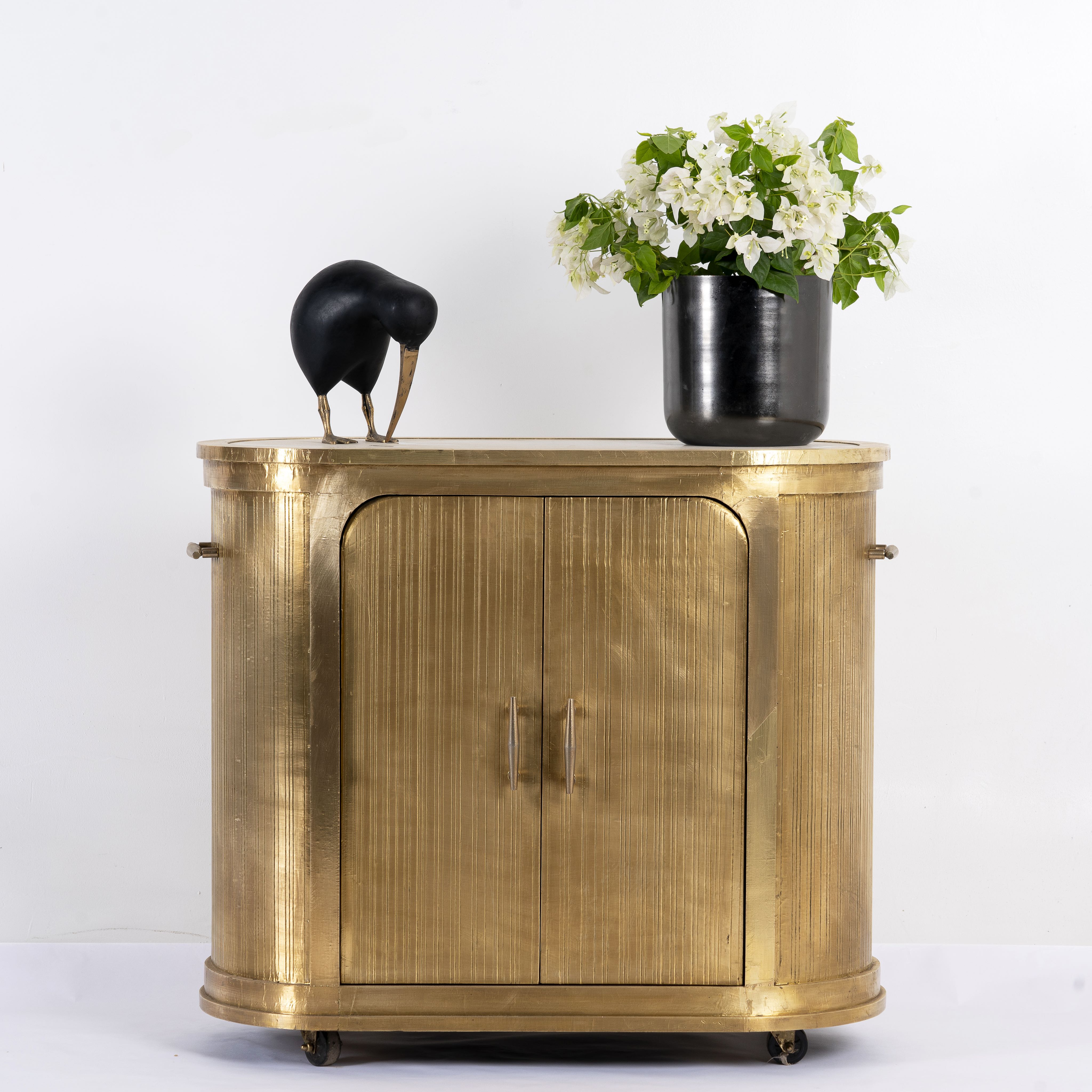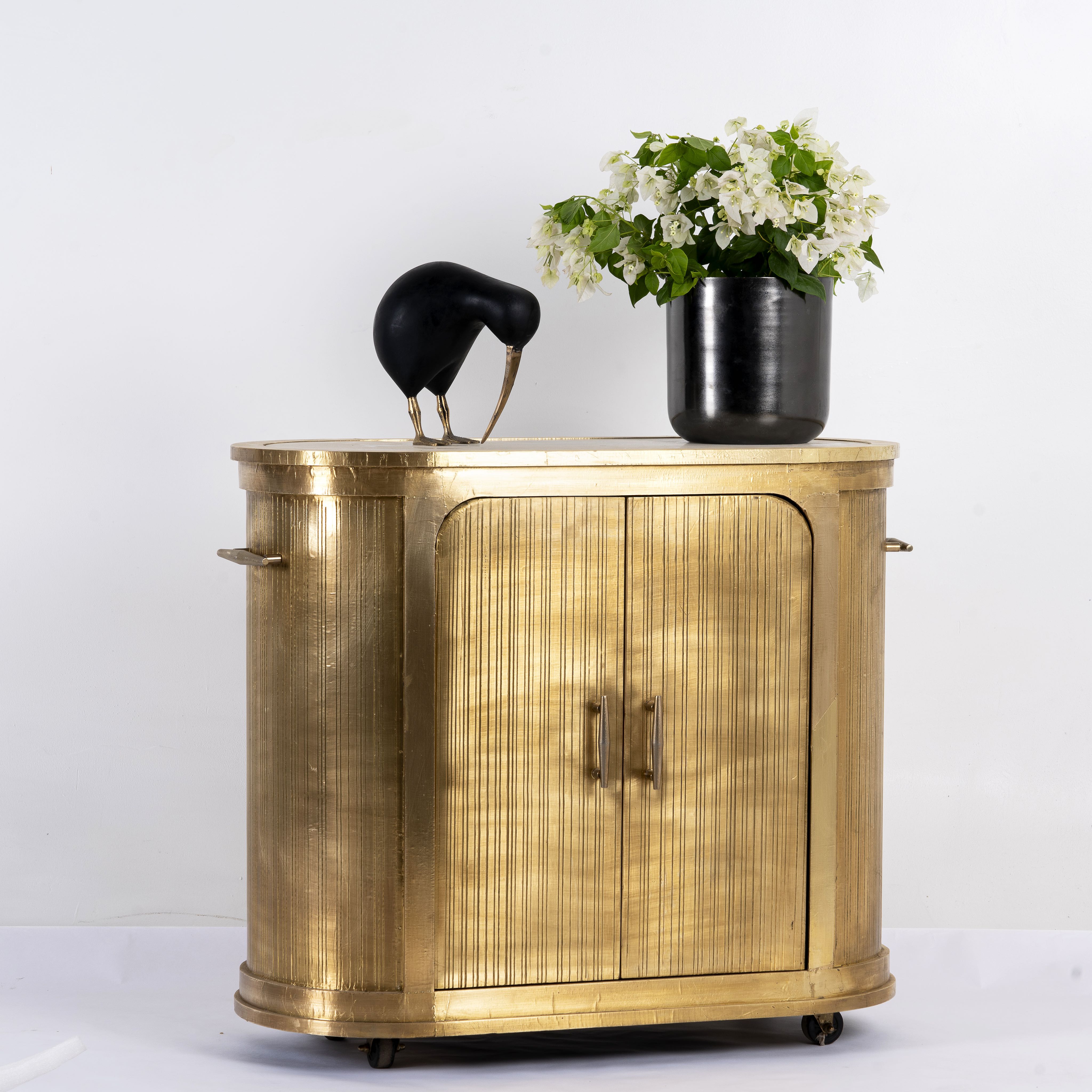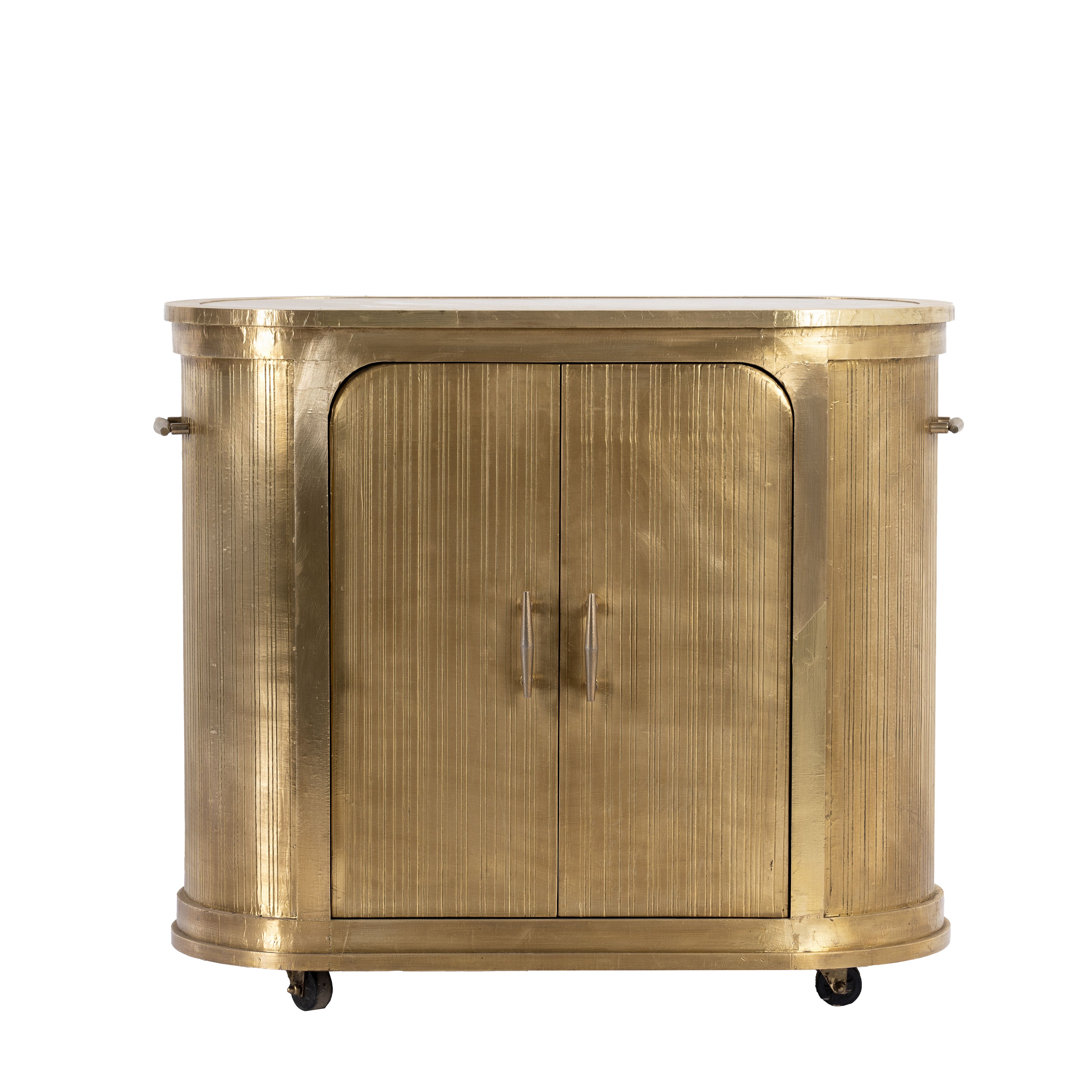 Dieser Barwagen ist ideal für die Unterhaltung und dient nicht nur als funktionale Ergänzung, sondern auch als Blickfang in jedem modernen Wohnraum. Die Kombination aus natürlichen Materialien und metallischen Oberflächen verleiht ein luxuriöses und doch modernes Gefühl und macht ihn zu einer vielseitigen Wahl zur Aufwertung Ihrer Inneneinrichtung. Ob zum Servieren von Getränken oder zum Präsentieren von Dekorationsgegenständen, dieser Barwagen strahlt Eleganz und Funktionalität aus und wertet die Atmosphäre jedes Raums auf, den er schmückt.