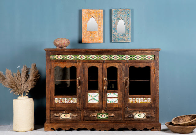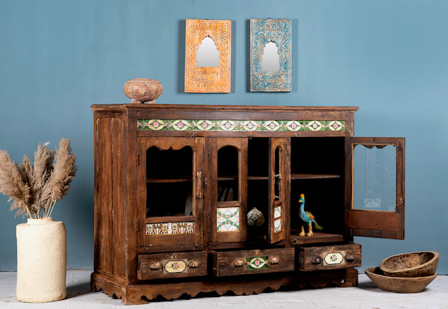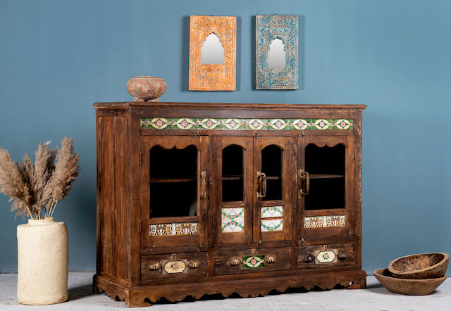 UNA - Renoviertes antikes indisches Showcase mit Keramik 156 cm